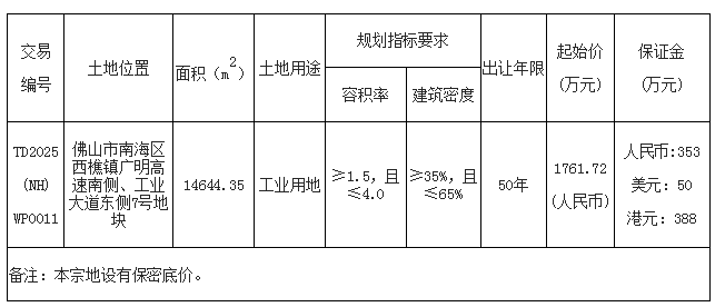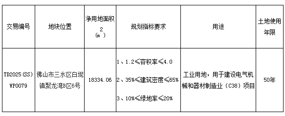 五、有意参与竞买者可于2025年12月3日后登录网上交易系统下载TD2025(SS)WP0079地块的《佛山市三水区国有建设用地使用权网上拍卖出让文件》。