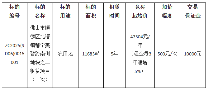 佛山市顺德区北滘镇土地发展中心采用网上竞价方式出租位于北滘镇都宁美碧路南侧的佛山市顺德区北滘镇都宁美碧路南侧地块之二租赁项目(二次)使用权,欢迎符合资格的竞买人参与竞价。