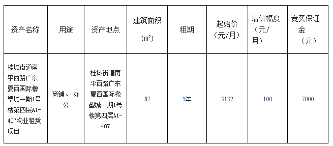 南海桂城街道南平西路广东夏西国际橡塑城一期1号楼第四层A1-407物业租赁项目