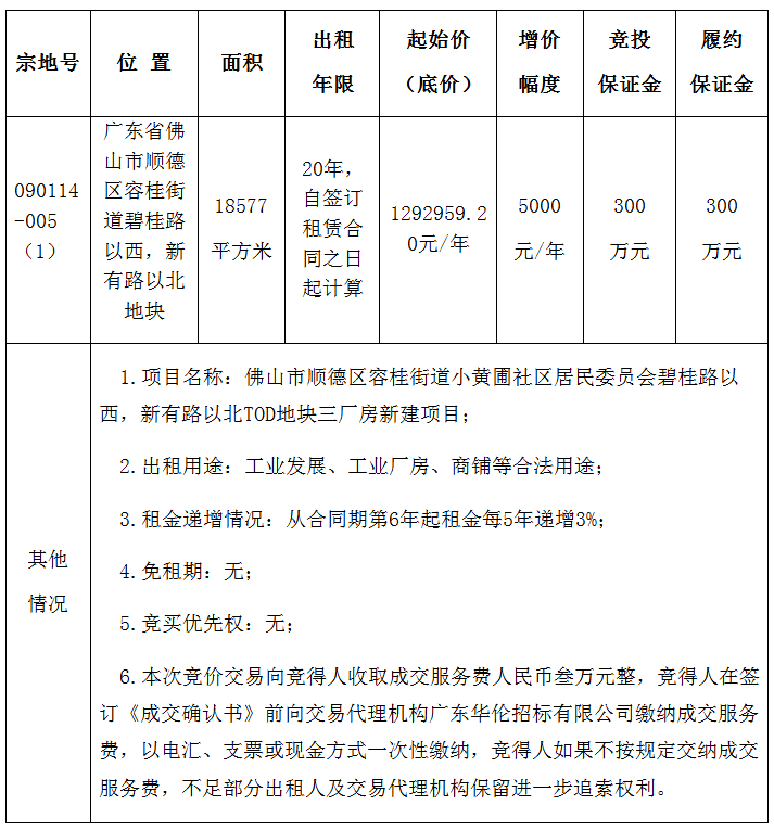 4.佛山市顺德区容桂街道办事处对本次国有建设用地使用权出租拥有最终解释权。
