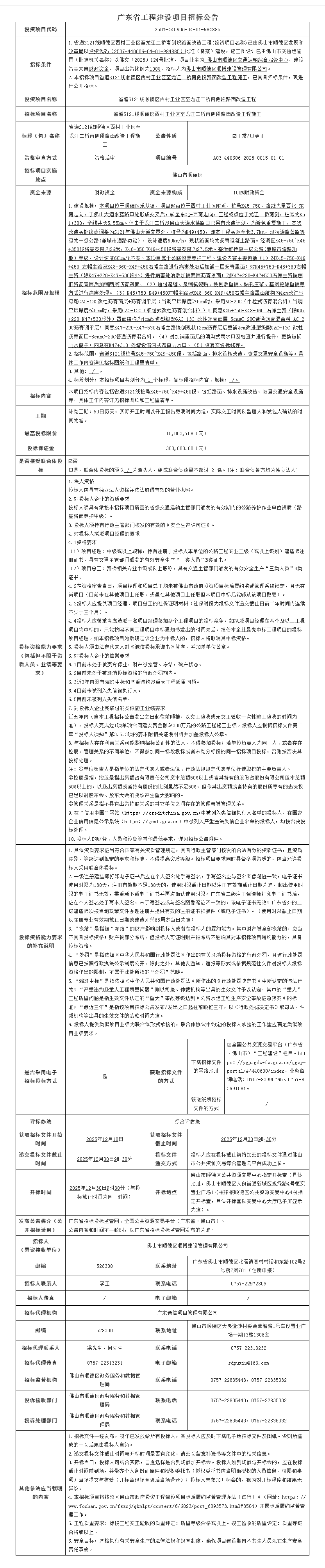 顺德伦教街道325国道以北、新基北路以西地块东侧20米道路工程施工招标公告