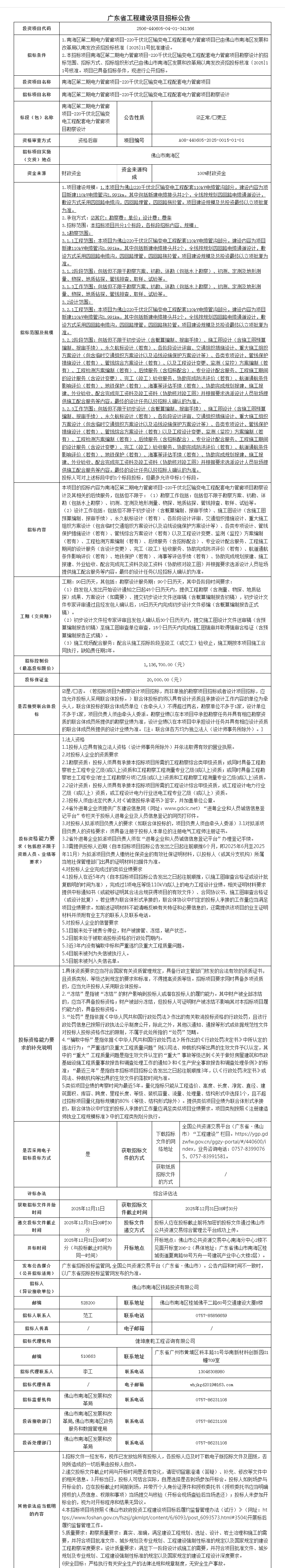 南海区第二期电力管廊项目-220千伏北区输变电工程配套电力管廊项目勘察设计招标公告