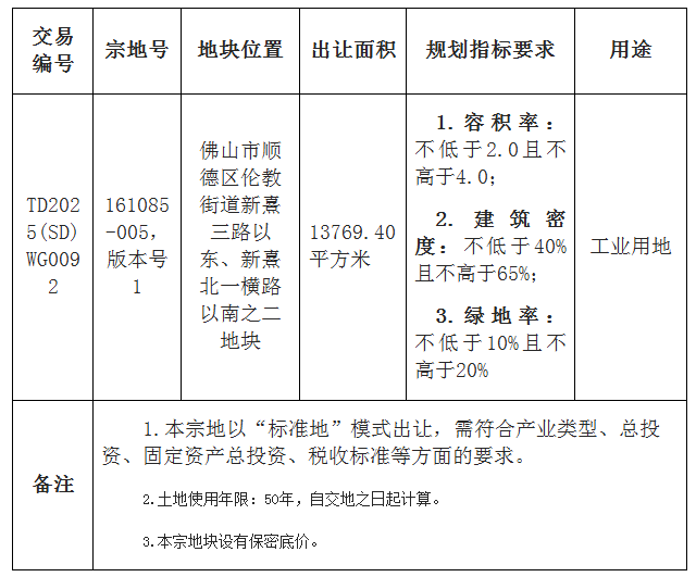 五、有意参与竞买者可于2025年12月12日后登录网上交易系统下载TD2025(SD)WG0092地块的《佛山市顺德区国有建设用地使用权网上挂牌出让文件》。