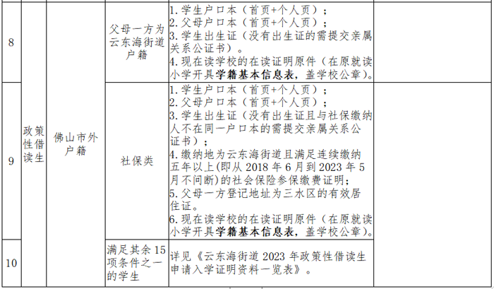 (四)符合云东海街道政策性借读生条件的佛山市外户籍学生(以下简称“政策性借读生”)(见附件1)