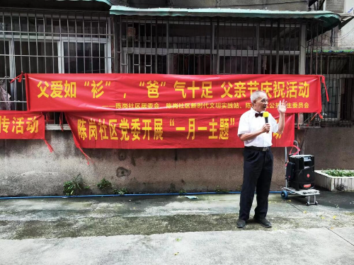 社区热心居民王阿姨带上自己年迈的父亲一起参加活动,她说:“以前工作忙,疏于对父亲的照顾,现在父亲老了才明白,子女除了有孝心还是不足够,还应该多花时间陪伴父母、孝敬父母,感谢社区举办父亲节活动,让我和父亲回忆过去、珍惜现在。”此外,活动现在还融入了禁毒宣传、消防安全、健康知识、夏季预防登革热、征兵宣传、垃圾分类、退军政策宣传等活动。