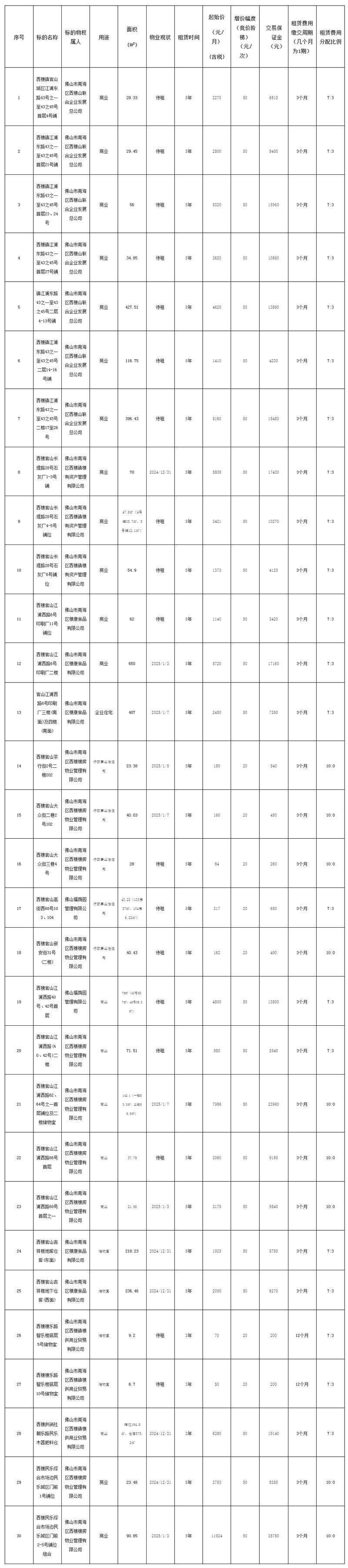 5.上述物业均按现状招租。表内面积数据仅供参考,以实际交付面积为准,不影响租赁费用标准。