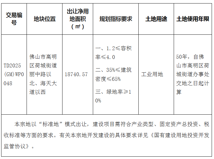 本块地其他规划建设要求按《高明区土地使用规划条件》(佛规明设函〔2025〕0079号)执行。