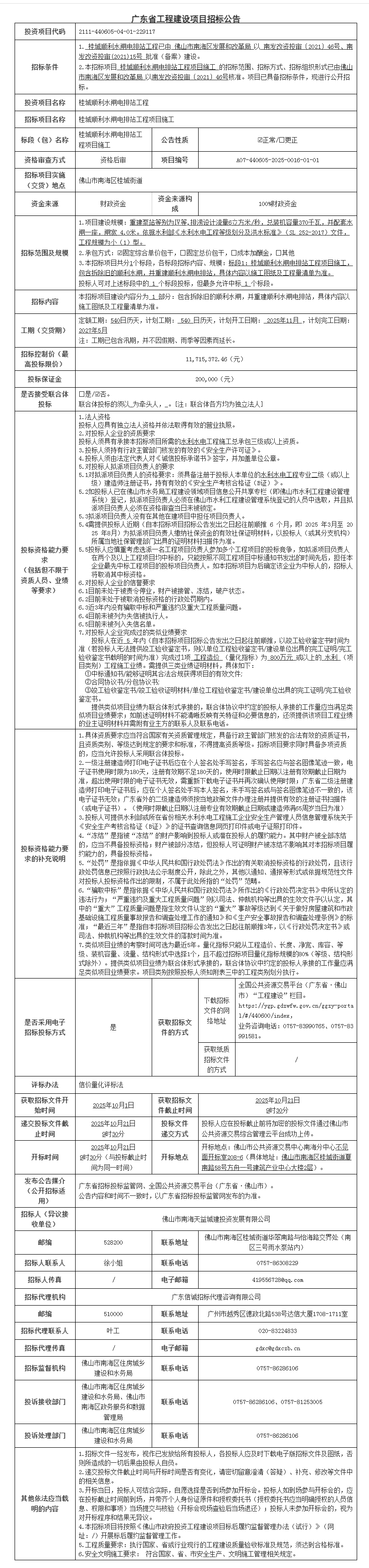 佛山市中心城区排水防涝能力提升项目(桂城片区)——南海区中心城区雨水泵站提升改造工程(一期)勘察设计招标公告