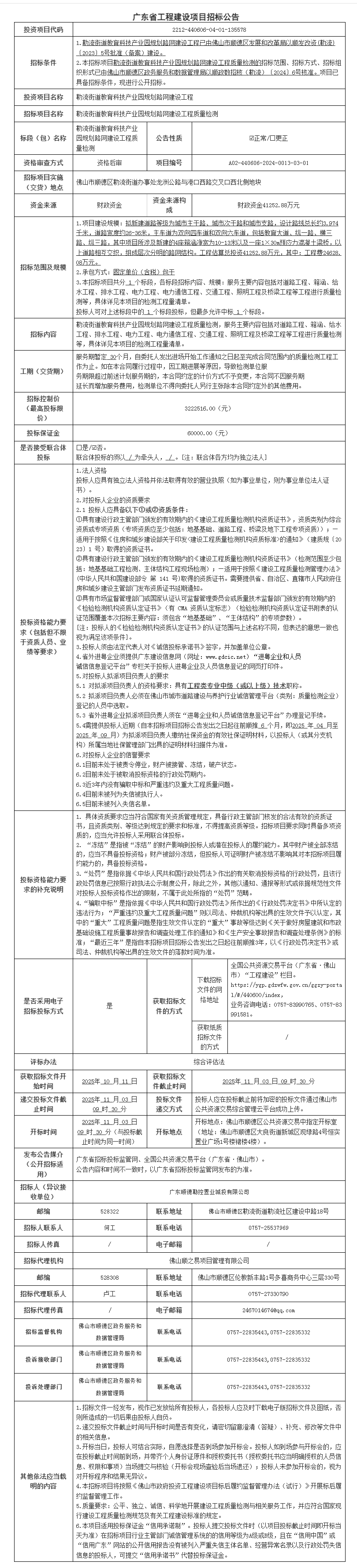 时间:2025-10-12 人气:65 来源:佛山市公共资源交易信息化综合平台 作者: