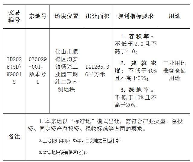 五、有意参与竞买者可于2025年10月9日后登录网上交易系统下载TD2025(SD)WG0048地块的《佛山市顺德区国有建设用地使用权网上挂牌出让文件》。