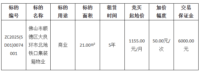 佛山市顺德区宏良建设发展有限公司采用网上竞价方式出租位于佛山市顺德区大良环市北地铁口集装箱,欢迎符合资格的竞买人参与竞价。
