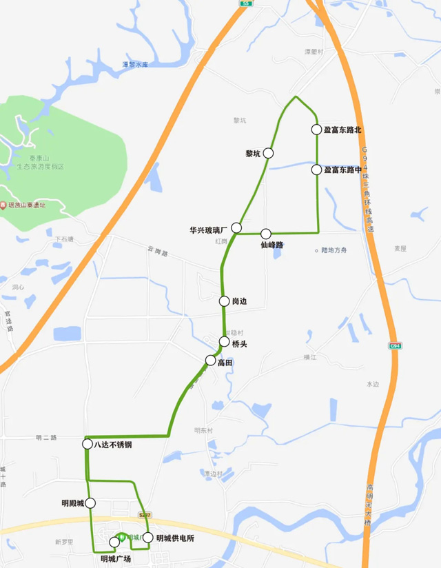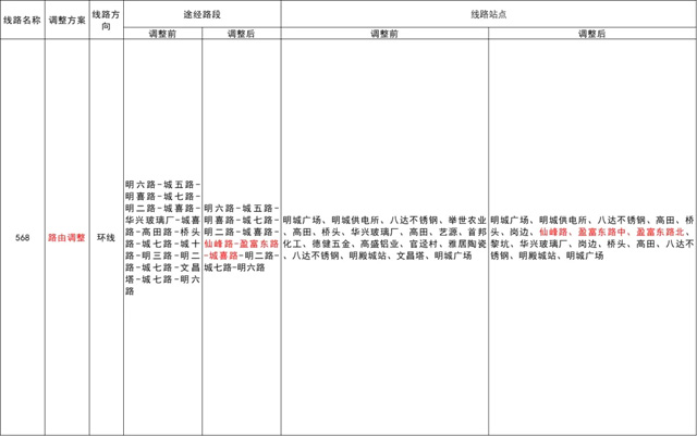取消绕行高田路、城十路、明二路,改经仙峰路、盈富东路。