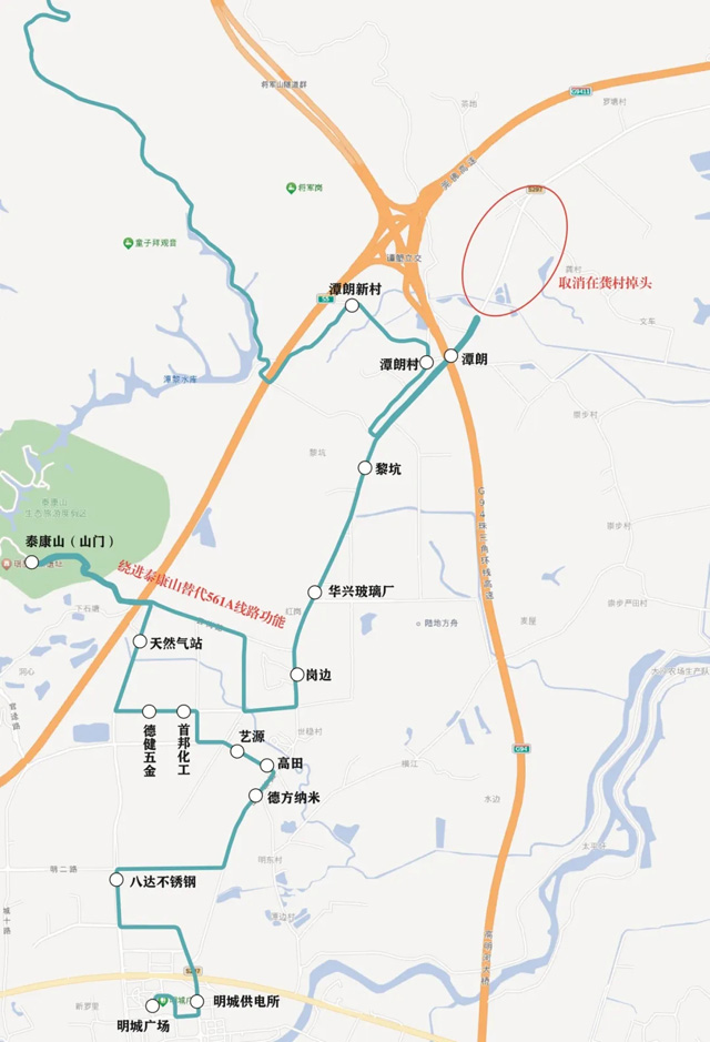 原561A路服务区域将由优化后的563路覆盖,保障泰康山片区市民出行不受影响。