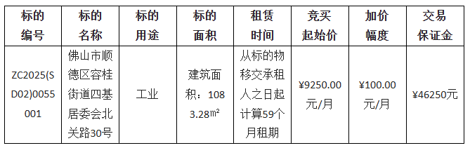 > 佛山市顺德区容桂街道四基居委会北关路15号租赁权竞投
