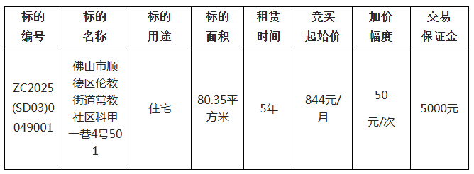 1.项目名称:佛山市顺德区伦教街道常教社区科甲一巷4号501公有物业公开招租项目