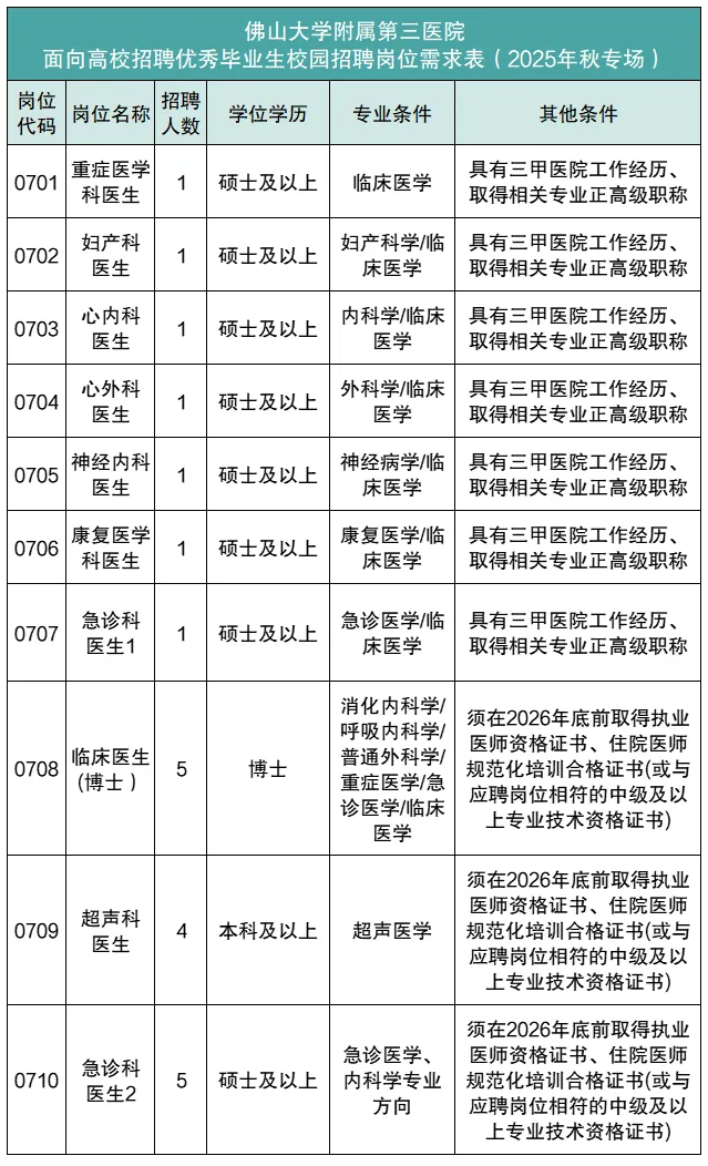 佛大附三院2025年合同制专业技术人员招聘公告