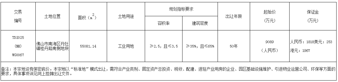 > 佛山市南海区丹灶镇桂丹路南侧地块网上挂牌出让