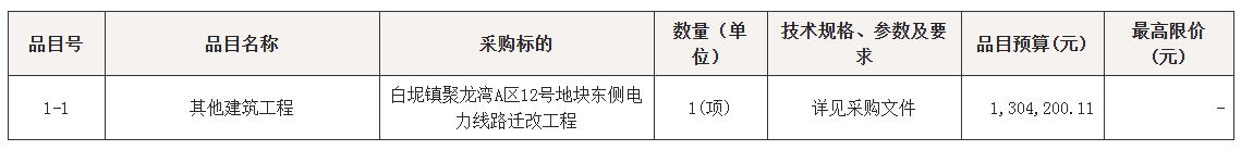 采购包1(白坭镇聚龙湾A区12号地块东侧电力线路迁改工程):