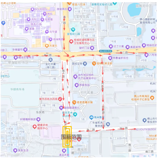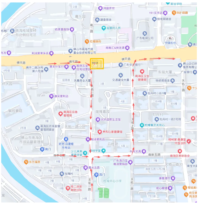 桂城中心小学周边居民南向北方向可通过天佑二路进入佛平路。