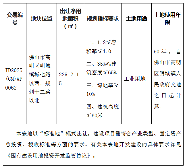 五、有意参与竞买者可于2025年11月3日后登录网上交易系统下载TD2025(SS)WP0060地块的《佛山市三水区国有建设用地使用权网上拍卖出让文件》。