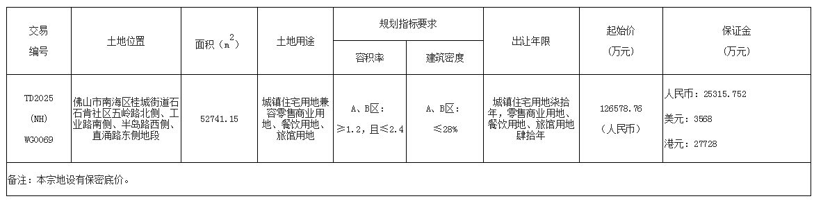 九、自本次公告起至网上挂牌截止期间,如有关于本宗地竞买文件的修改、澄清、说明等将通过网上交易系统以及佛山市南海区人民政府网发布,请有意参与竞买者密切留意。其它未尽事宜,详见本宗地的网上挂牌出让文件。