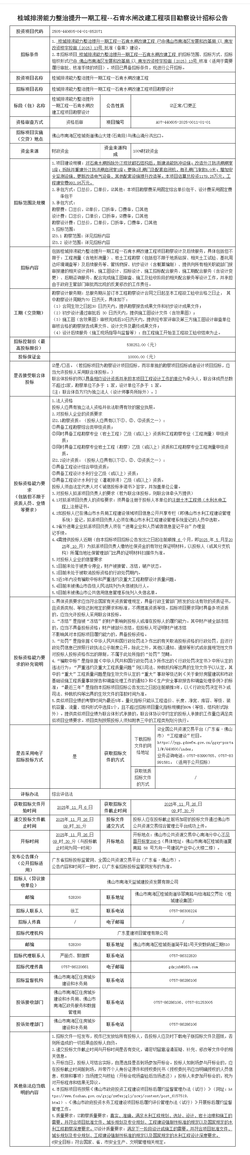 > 南海桂城排涝能力整治提升一期工程--石肯水闸改建工程项目勘察设计招标公告
