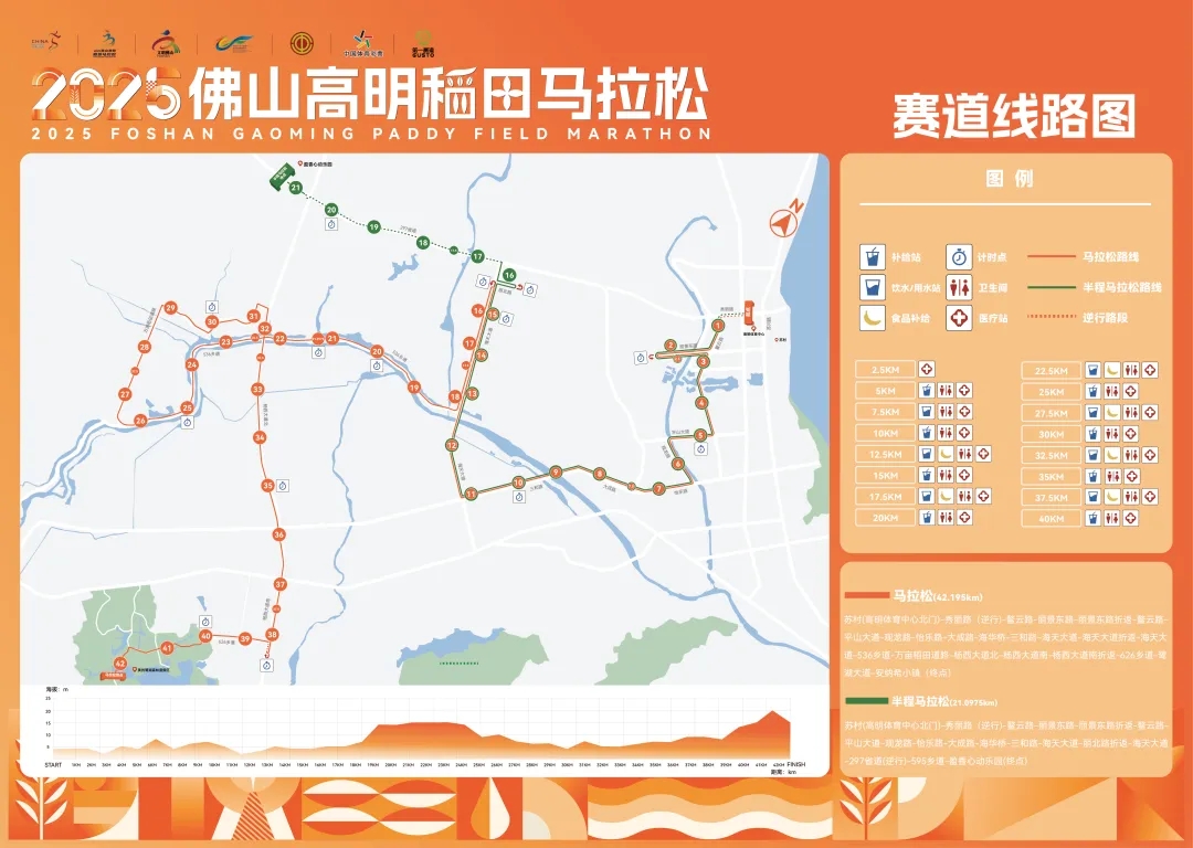 (二)11月23日,高明稻田马拉松路线(全马42.195公里)
