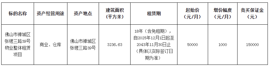 8.租赁期内,租赁价格每五年递增7%,具体详见《佛山市禅城区张槎三路39号物业整体租赁项目交易方案》