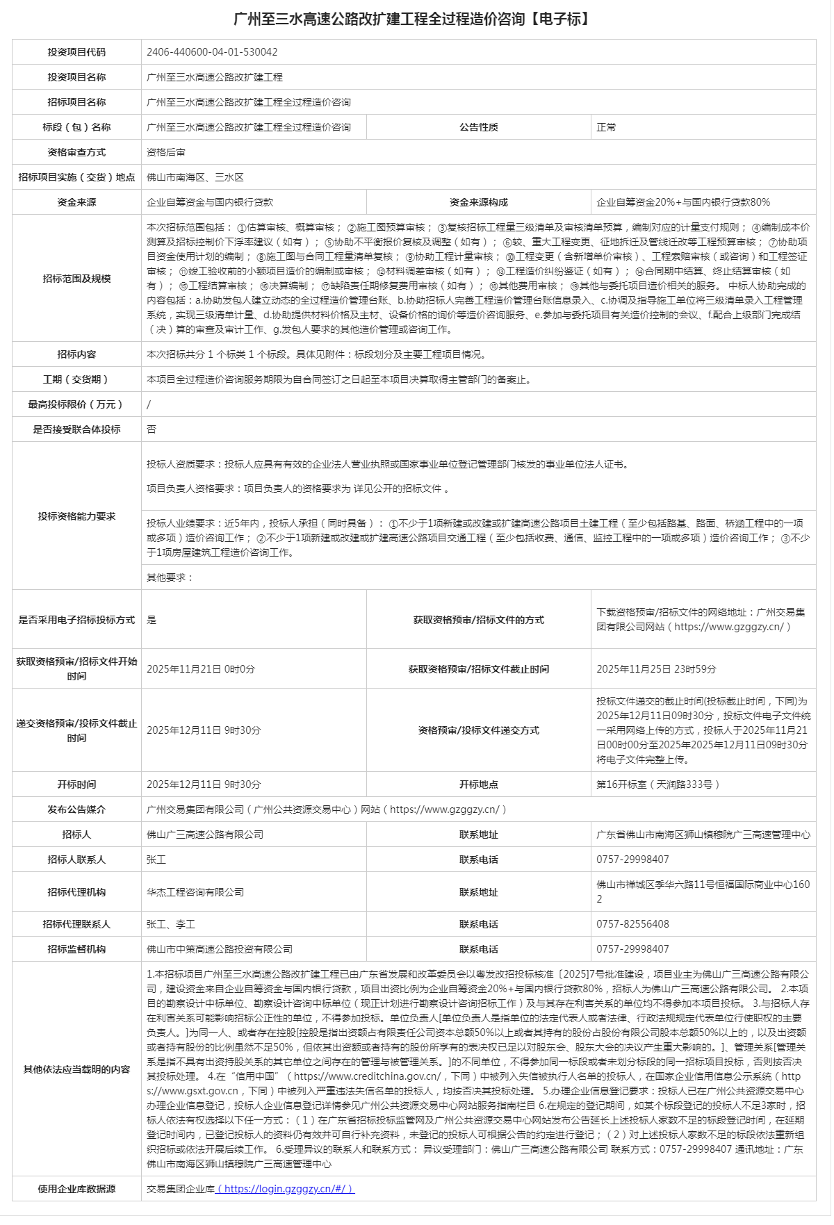 广州至三水高速公路改扩建工程_广州至三水高速公路改扩建工程全过程造价咨询招标公告