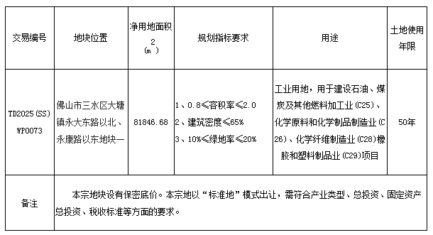 五、有意参与竞买者可于2025年11月21日后登录网上交易系统下载TD2025(SS)WP0073地块的《佛山市三水区国有建设用地使用权网上拍卖出让文件》。