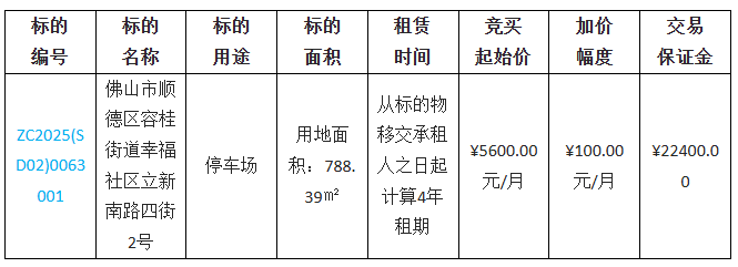 出租方采用网上竞价方式出租位于佛山市顺德区容桂街道幸福社区立新南路四街2号租赁权竞投,欢迎符合资格的竞买人参与竞价。