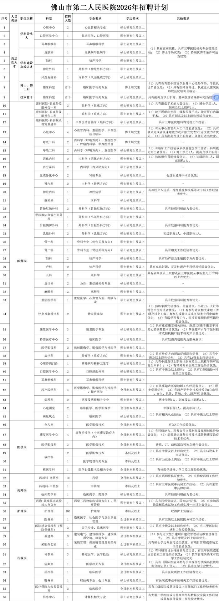 登录佛山市第二人民医院官网-人才招聘-“简历投递”