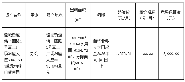 南海桂城街道佛平四路1号富丰广场24座大厦603、604单元物业租赁项目
