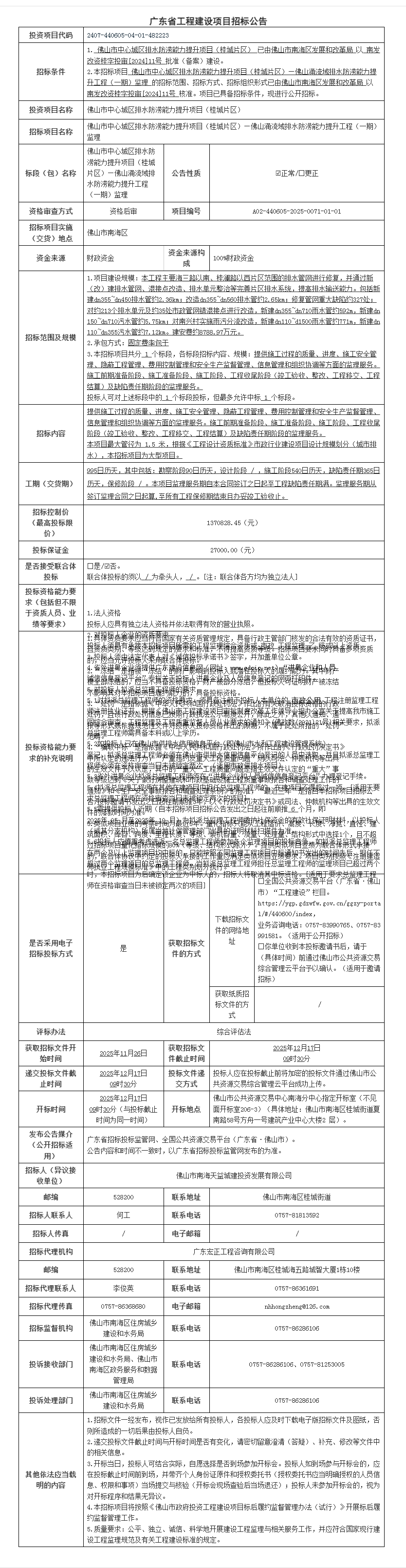 2.项目监督单位:佛山市顺德区北滘镇财政和公有资产管理办公室