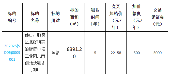 佛山市顺德区北滘镇土地发展中心采用网上竞价方式出租位于北滘镇美的厨房电器工业园东南侧的佛山市顺德区北滘镇美的厨房电器工业园东南侧地块租赁项目使用权,欢迎符合资格的竞买人参与竞价。