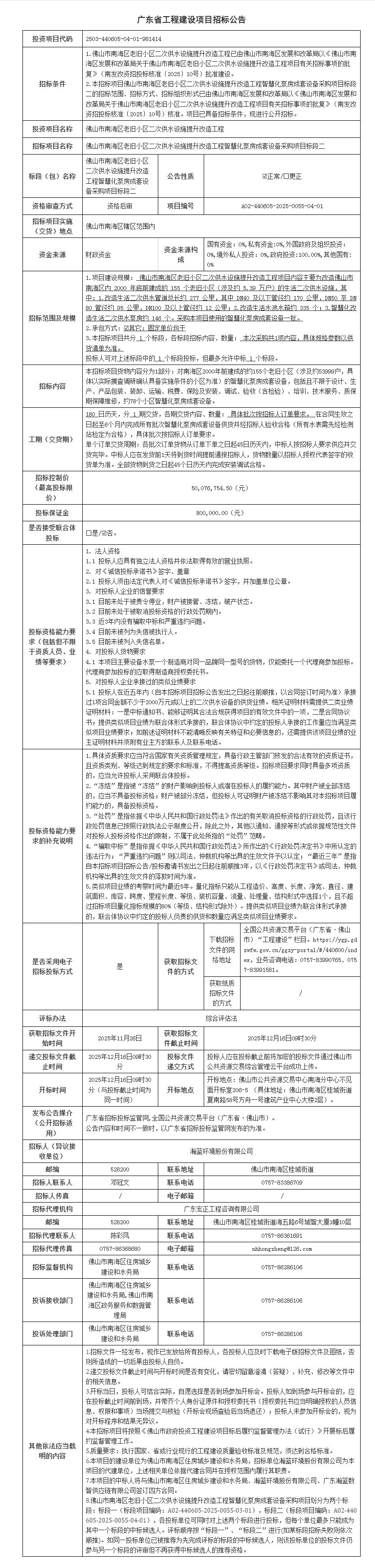 时间:2025-12-01 人气:27 来源:佛山市公共资源交易信息化综合平台 作者: