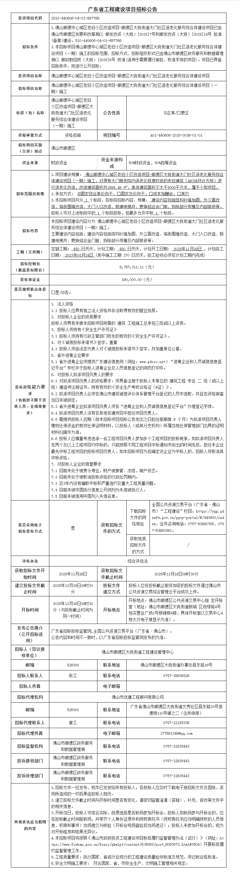 佛山顺德中心城区老旧小区改造项目-顺德区大良街道大门社区适老化服务综合体建设项目(一期)施工招标公告