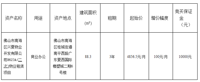 > 佛山市南海区兴夏物业开发有限公司B623A(二次)物业租赁项目