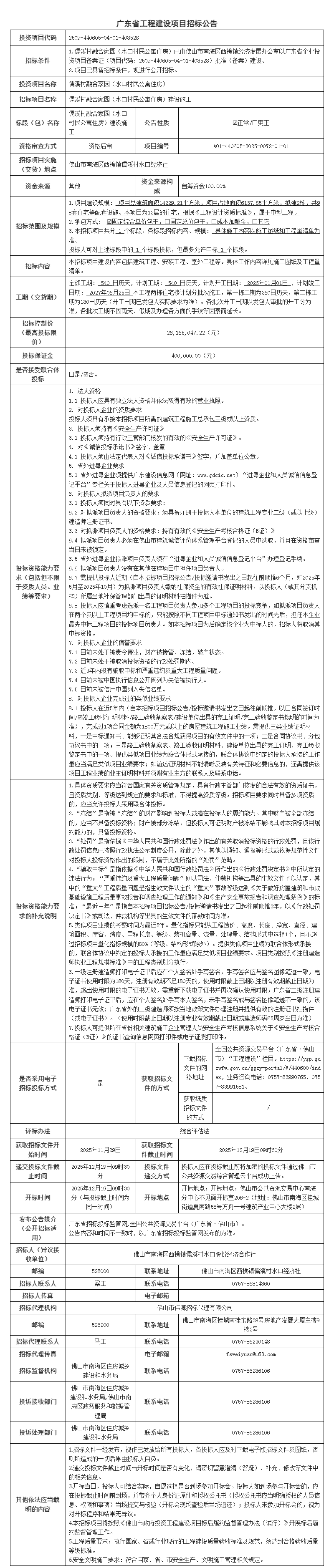 佛山市南海区中心城区雨污分流改造项目(大沥黄岐、海北)三标招标公告