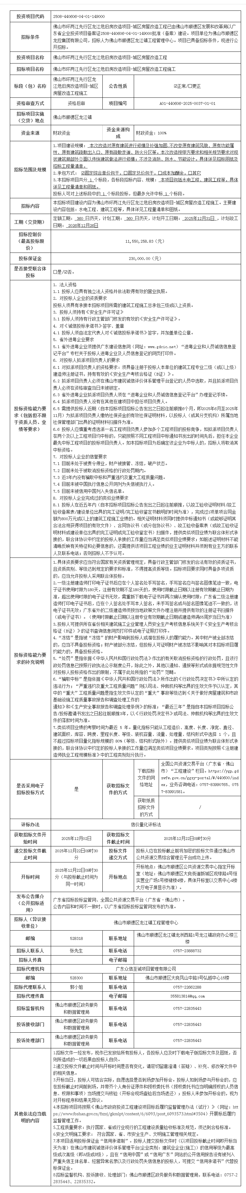佛山市环两江先行区龙江危旧房改造项目-城区房屋改造工程施工招标公告