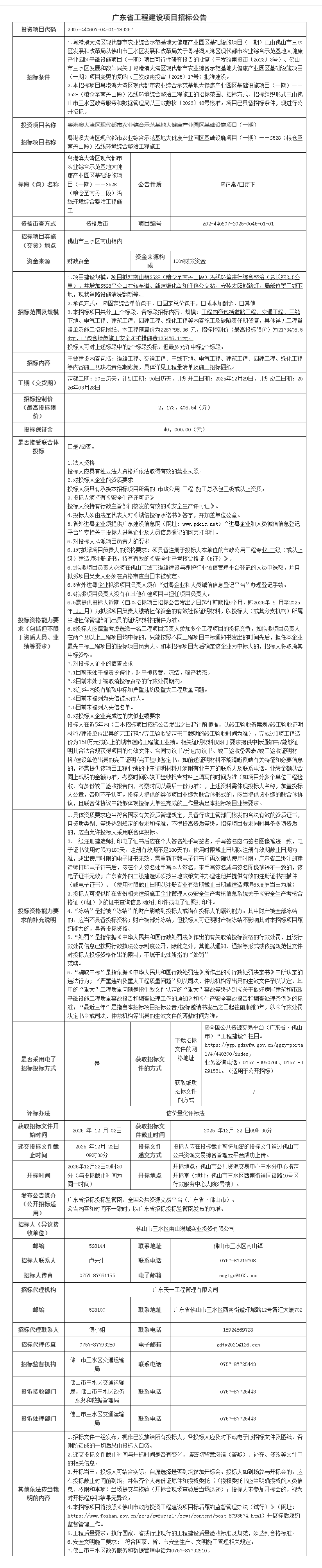 粤港澳大湾区现代都市农业综合示范基地大健康产业园区基础设施项目(一期)——S528(粮仓至南丹山段)沿线环境综合整治工程
