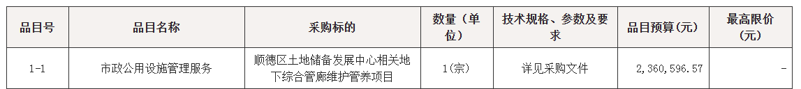 顺德区土地储备发展中心相关地下综合管廊维护管养项目招标公告