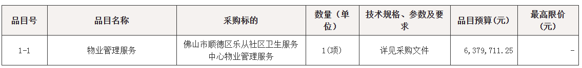 项目名称:佛山市顺德区乐从社区卫生服务中心物业管理服务社会化采购项目