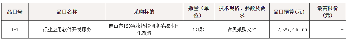 采购包1(佛山市120急救指挥调度系统本国化改造项目):