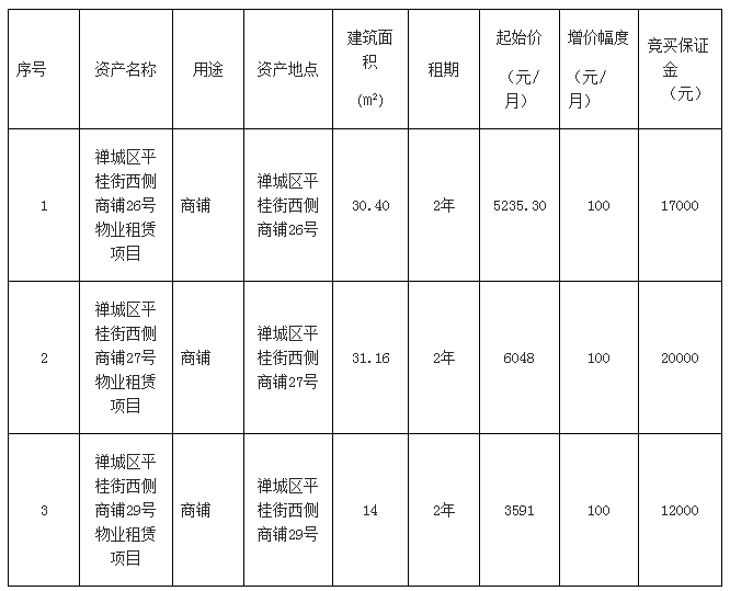 禅城区平桂街西侧商铺26号等一批物业租赁项目