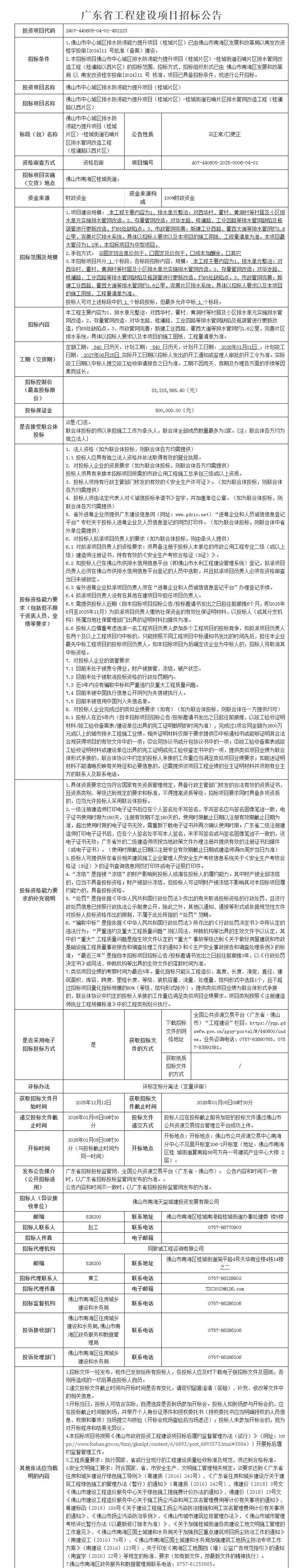 佛山市中心城区排水防涝能力提升项目(桂城片区)-桂城街道石啃片区排水管网改造工程(桂澜路以西片区)招标公告