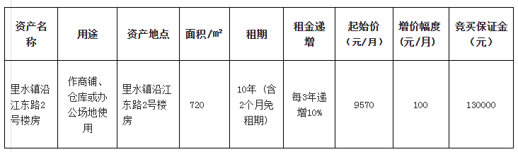 4.产权证照情况:有产权证照(竞买人应充分考虑其风险,一经存入竞买保证金即表示承认、接受本项目的现状,愿意按约定支付租赁价款和遵守租赁合同的约定)。