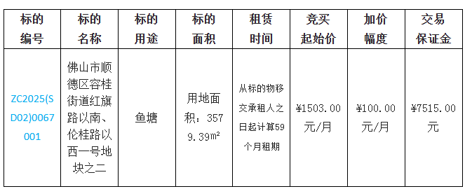 出租方采用网上竞价方式出租位于佛山市顺德区容桂街道红旗路以南、伦桂路以西一号地块之二租赁权竞投,欢迎符合资格的竞买人参与竞价。