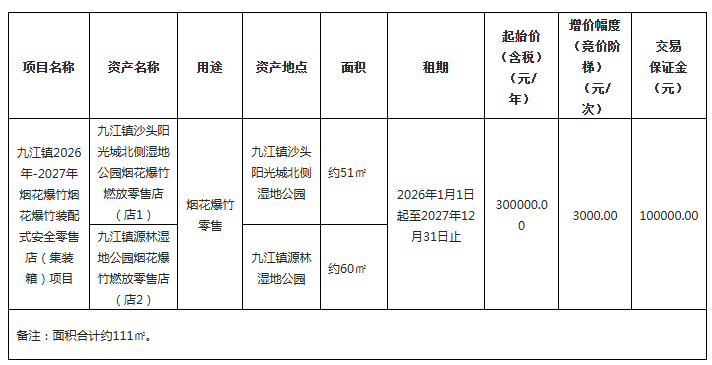 南海九江镇2026年-2027年烟花爆竹烟花爆竹装配式安全零售店(集装箱)项目租赁公告