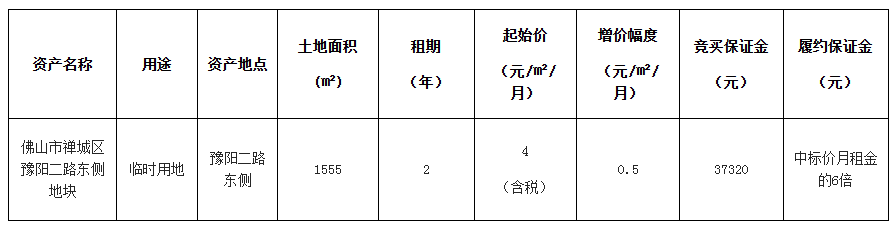 2.佛山市公共资源交易中心南海分中心通过佛山市资产交易网上交易系统及粤公平网站发布的项目信息(包括但不限于公告信息、交易文件、合同条款等)并不构成佛山市公共资源交易中心南海分中心对项目的任何交易建议。意向人应不依赖于已披露的项目信息并自行对项目的相关情况进行必要的尽职调查和充分了解,对是否竞买该项目及项目成交后可能发生的费用和存在的风险自行作出充分评估,并独立承担所有风险。意向人一经申请参加竞租,即视为知晓、认可项目现状,佛山市公共资源交易中心南海分中心对此不承担任何法律责任。